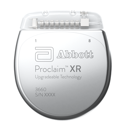 The industry-leading, recharge-free Proclaim™ XR SCS System uses Abbott’s unique BurstDR™ stimulation. This type of stimulation, evaluated in studies for over 10 years in more than 1,000 patients worldwide—delivers consistent, superior* and repeatable results.14-35 Features include: